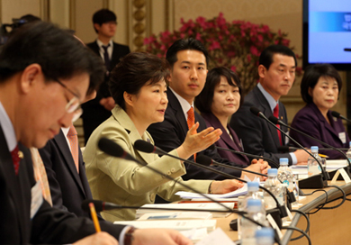 ¹Ú±ÙÇý ´ëÅë·ÉÀÌ 14ÀÏ ¿ÀÀü û¿Í´ë ¿µºó°ü¿¡¼­ ¿­¸° ¹ý¹«ºÎ¡¤¾ÈÀüÇàÁ¤ºÎ¡¤½ÄǰÀǾàǰ¾ÈÀü󡤿øÀڷ¾ÈÀüÀ§¿øÈ¸¿¡ ´ëÇÑ ¾÷¹«º¸°í¿¡¼­ ¸ðµÎ¹ß¾ðÀ» Çϰí ÀÖ´Ù.(»çÁø=û¿Í´ë)