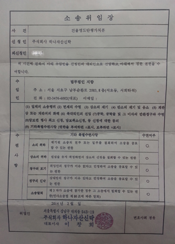 ±×·¯³ª ÃëÀçÁøÀÌ È®º¸ÇÑ ÀÚ·á¿¡ µû¸£¸é, (ÁÖ)ÇѼº¿¡½º¾Ø¿¡½º°¡ (ÁÖ)ÇϳªÀÚ»ê½ÅŹÀ¸·ÎºÎÅÍ À§ÀÓ¹Þ¾Ò´Ù°í ÁÖÀåÇÏ´Â ¼­·ù´Â ¡®¼Ò¼ÛÀ§ÀÓÀå(»ç°Ç¸í : °Ç¹°¸íµµ´ÜÇడóºÐ)¡¯À¸·Î ÀÌ ¡®¼Ò¼ÛÀ§ÀÓÀ塯Àº °Ç¹°ÀÇ ¸ÅÀÔÀǻ簡 ÀÖ´Â ÀÚ°¡ ÀܱݱîÁö ¸ðµÎ Ä¡·ç°í ¼ÒÀ¯±Ç ¶Ç´Â ä±ÇÀ» ¿ÏÀüÈ÷ È®º¸ÇßÀ» °æ¿ì ÇöÀç ¼¼ÀÔÀÚµéÀÌ Á¡À¯Çϰí ÀÖ´Â °Ç¹°ÀÇ ¸íµµ¸¦ È®º¸Çϱâ À§ÇÑ ¹ý¿ø¼Ò¼Û°ü·Ã ¼­·ù·Î È®ÀεŠ(ÁÖ)ÇѼº¿¡½º¾Ø¿¡½º°¡ (ÁÖ)ÇϳªÀÚ»ê½ÅŹÀ¸·ÎºÎÅÍ ±Ç¸®¸¦ À§ÀÓ¹Þ¾Ò´Ù´Â ÁÖÀåÀº °ÅÁþÀ¸·Î µå·¯³µ´Ù.