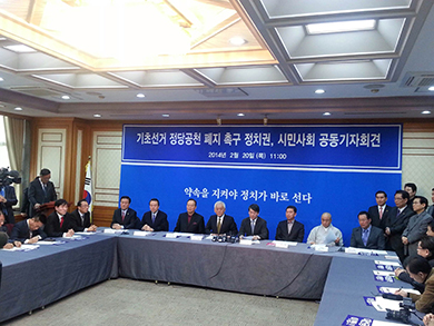 ³ë¿µ°ü Àü±¹½Ã±ºÀÚÄ¡±¸ÀÇȸÀÇÀåÇùÀÇȸ »ç¹«ÃÑÀåÀº 20ÀÏ ±¹È¸¿¡¼ ±âÃʼ±°Å Á¤´ç°øÃµ ÆóÁö°¡ ±¹¹Î¿¡°Ô ¾à¼ÓÇÑ ´ë¼± °ø¾àÀÓÀ» »ó±â½ÃŰ°í ´ëÅë·ÉÀÇ ¾à¼Ó ÀÌÇàÀ» Ã˱¸ÇÏ´Â ±âÀÚȸ°ßÀ» °¡Á³´Ù°í ¹àÇû´Ù.