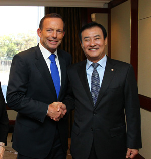 Åä´Ï ¾Ö¹þ ÃѸ®´Â ÇöÀç ¼­¸íÀ» ÃßÁø ÁßÀÎ ¾ç±¹ FTA¿Í °ü·ÃÇÏ¿© ¡°¼­¿ï ¹æ¹® ½Ã ÇÑ-È£ÁÖ FTA°¡ ¼­¸íµÉ ¼ö Àֱ⸦ ±â´ëÇÑ´Ù¡±¸ç ³²Àº ÀýÂ÷¿¡ ´ëÇÑ ±¹È¸ÀÇ °ü½É°ú Çù·ÂÀ» ´çºÎÇß´Ù.