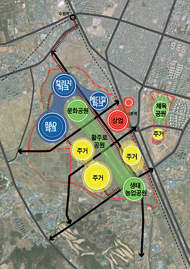 ºñÇàÀå ºÎÁö ºÏÂÊ º§Æ®´Â ´ëÇпø¿¬ÇÕ Ä·ÆÛ½º¸¦ Áß½ÉÀ¸·Î ÷´Ü»ê¾÷ ¿¬±¸°³¹ß´ÜÁö¿Í °ü±¤ÀǷḦ À§ÇÑ ¸ÞµðÄÃÆÄÅ©¸¦ µ¿¼·Î ¹èÄ¡ÇØ ÀÏÀÚ¸® âÃâ°ú Áö¿ª°æÁ¦ Ȱ¼ºÈ¸¦ µµ¸ðÇß°í, ÄèÀûÇÑ È¯°æÀÇ ³²ÂÊ º§Æ®´Â Àú¹Ðµµ ÁÖ°Å´ÜÁö¸¦ Á¶¼ºÇØ ¼öµµ±Ç ³²ºÎÁö¿ª Áְżö¿ä¸¦ ÃæÁ·ÇÒ °èȹÀÌ´Ù.