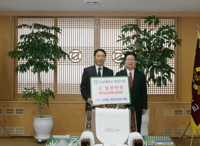 ½Å ´ëÇ¥´Â ÀÌ¿¡ ¸ð±³ÀÎ Àü³²´ë ¼öÀÇÇаú ÈĹèµéÀ» À§ÇØ ½á´Þ¶ó¸ç ´ëÇÐ Ãø¿¡ 1,000¸¸¿øÀ» ³»³õ¾Ò°í ÇâÈÄ Áö¼ÓÀûÀÎ Áö¿ø Àǻ縦 ¹àÇû´Ù. Àü³²´ë ¼öÀÇ´ë´Â ½Å ´ëÇ¥ÀÇ ¶æ¿¡ µû¶ó ¡®½ÅÁ¦¼· ÀåÇбâ±Ý¡¯À» Á¦Á¤, ¼ºÀûÀÌ ¿ì¼öÇÏ°í ºÀ»çÁ¤½ÅÀÌ ÅõöÇÑ ÇлýÀ» ¸Å³â ¼±¹ßÇØ 300¸¸¿ø ¾¿ÀÇ ÀåÇбÝÀ» Áö±ÞÇϱâ·Î Çß´Ù.