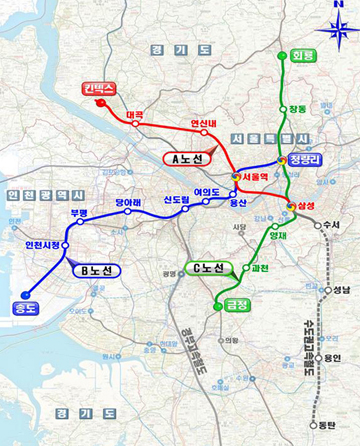 Á¤ºÎ°¡ ¼öµµ±Ç ±¤¿ª±ÞÇàöµµ 3°³ ³ë¼± °¡¿îµ¥ °æ±â °í¾ç ŲŨ½º¡¼¿ï »ï¼º¿ª ³ë¼±À» ¸ÕÀú °Ç¼³Çϱâ·Î Çß´Ù.