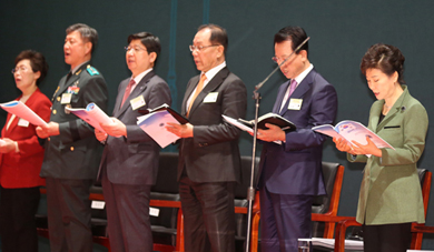 û¿Í´ë´Â ¡°¡®ÅëÀÏÀ» ÀÌ·ç½Ã´Â Çϳª´Ô¡¯À̶ó´Â ÁÖÁ¦·Î ¿¸° À̳¯ ±âµµÈ¸´Â Çѱ¹ ±³È¸°¡ ±¹¹ÎÇູ½Ã´ë¸¦ Ãß±¸ÇÏ´Â ¹Ú±ÙÇýÁ¤ºÎÀÇ ¼º°øÀ» ±â¿øÇϸç 21¼¼±â¸¦ ÁÖµµÇÏ´Â ºÎ°ÇÑ ´ëÇѹα¹ÀÇ ºñÀüÀ» ÇÔ²² °øÀ¯ÇÏ´Â ÀÚ¸®¿´´Ù¡±°í ¼³¸íÇß´Ù.