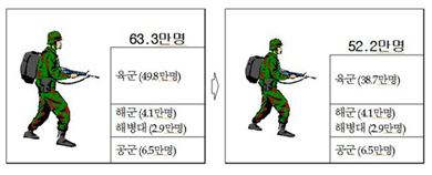ÇöÀç 63¸¸3000¿©¸íÀÎ ¿ì¸® ±ºÀÇ º´·ÂÀÌ 2022³â±îÁö 52¸¸2000¿©¸íÀ¸·Î Á¡ÁøÀûÀ¸·Î °¨ÃàµÈ´Ù.