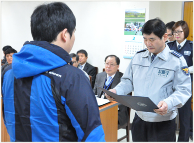 ¾È¼º°æÂû¼(¼Àå ±è±Õö)´Â 14ÀÏ º»°ü 2Ãþ ȸÀǽǿ¡¼ Àýµµ¹üÀ» °Ë°ÅÇϴµ¥ °áÁ¤ÀûÀÎ Á¦º¸¸¦ ÇÑ ½Ã¹Î ¹Ú ¸ð¾¾¿¡°Ô °¨»çÀå°ú º¸»ó±ÝÀ» ¼ö¿©Çß´Ù°í ¹àÇû´Ù.