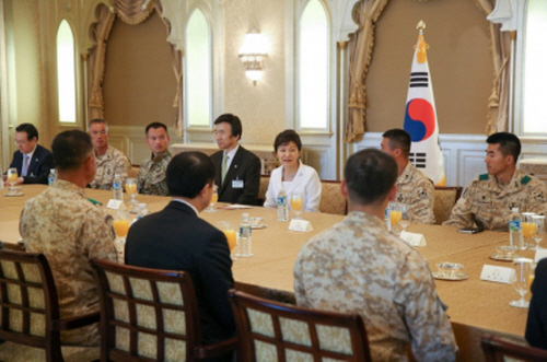 2014³â 5¿ù 21ÀÏ 000¹Ú±ÙÇý ´ëÅë·ÉÀº 20ÀÏ ¿ÀÈÄ ¾Æ¶ø¿¡¹Ì¸®Æ®¿¬ÇÕ(UAE) ¹æ¹® ¸¶Áö¸· ÀÏÁ¤À¸·Î UAE¿¡ ÆÄº´µÇ¾î ÀÓ¹«¸¦ ¼öÇà ÁßÀÎ ¾ÆÅ©ºÎ´ë À庴µéÀ» ¸¸³ª °Ý·ÁÇß½À´Ï´Ù.
