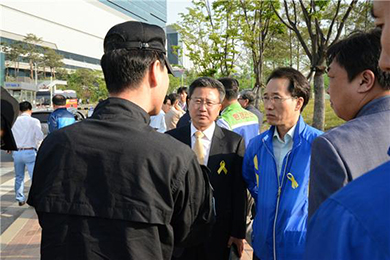 ÇÑÆí À̳¯ ÇöÀå¿¡´Â ÀÌ¿ø¿í ±¹È¸ÀÇ¿øÀ» Æ÷ÇÔÇÏ¿© »ç°í¼Ò½ÄÀ» Á¢ÇÑ Á¶±¤¸í, ±ÇÄ¥½Â µµÀÇ¿ø Èĺ¸, ¿øÀ¯¹Î, À̼ºÈñ, ¹ÚÁ¾¼±, ÃÖ¿ëÁÖ ½ÃÀÇ¿ø Èĺ¸ µî »õÁ¤Ä¡¹ÎÁÖ¿¬ÇÕ Àα٠Ã⸶È帵éÀÌ ±ÞÈ÷ ¸ð¿© ÇÔ²² »ç°í¿øÀÎÀ» ÆÄ¾ÇÇÏ´Â µî ¸ðµÎ°¡ ¹ß ºü¸¥ ´ëó¸¦ º¸¿© ´«±æÀ» ²ø¾ú´Ù.
