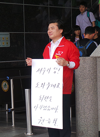 ¿øÀ¯Ã¶(4¼±, ÆòÅð©) »õ´©¸®´ç ºñ»ó´ëÃ¥À§¿øÀº 1ÀÏ ¿ÀÈÄ 1½Ã~2½Ã±îÁö ¾à 1½Ã°£µ¿¾È ÆòÅÿª ¾Õ ±¤Àå¿¡¼ ¡°¹Ý¼º°ú Çõ½ÅÀÇ 1ÀÎ ÇÇÄÏ¡±¼±°Å Ä·ÆäÀÎÀ» ÁøÇàÇß´Ù.