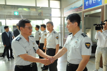 À̳¯ Çù·Â´ÜüÀå°úÀÇ Á¢°ß¿¡¼­ Çù·ÂÄ¡¾È¿¡ ´ëÇÑ °¨»çÀÇ ¶æÀÌ ´ã±ä ¼±¹° Àü´ÞÀ» ½ÃÀÛÀ¸·Î 4´ë¾Ç ±ÙÀý°ú °æÁ¦Çõ½Å¿¡ ºÎÀÀÇÏ´Â °æÂûȰµ¿ µî ÁÖ¿ä ¾÷¹«º¸°í, 112Á¾ÇÕ»óȲ½Ç µî ÇöÀå ºÎ¼­ ±Ù¹«ÀÚ ¹æ¹®¡¤°Ý·Á¿¡ À̾î ÇöÀå °æÂû°üÀÇ »ý»ýÇÑ ÀÌ¾ß±â ¹× °ÇÀÇ »çÇ×À» µè´Â ¼øÀ¸·Î ÁøÇàµÆ´Ù.