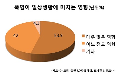 Æø¿°ÀÌ ÀÏ»ó»ýȰ¿¡ ¹ÌÄ¡´Â ¿µÇâ¿¡ ´ëÇÑ ´äº¯À¸·Î´Â ¡®¸Å¿ì ¸¹Àº ¿µÇ⡯(53.9%), ¡®¾î´À Á¤µµ ¿µÇ⡯(42.0%)À¸·Î ³ªÅ¸³ª °ÅÀÇ ¸ðµç ½Ã¹Î(95.9%)ÀÌ Æø¿°¿¡ ¹Î°¨ÇÑ ¹ÝÀÀÀ» º¸À̰í ÀÖ´Ù.