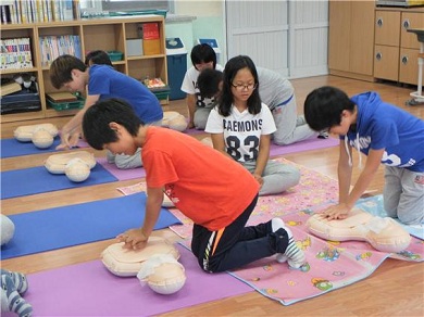 ÇлýµéÀº ÀÌ·Ð ±³À°À» ¹ÞÀº ÈÄ, ½ÉÆó¼Ò»ý¼ú ½Ã¹üÀ» º¸°í Á÷Á¢ ½Ç½ÀÇÑ´Ù. ¨ç ÀÇ½Ä È®ÀÎ, ¨è 119 ±¸Á¶¿äû, ¨é °¡½¿¾Ð¹Ú, ¨ê ÀΰøÈ£Èí, ¨ë ´Ù½Ã °¡½¿¾Ð¹Ú, ¨ì ÀΰøÈ£Èí µî ¼ø¼¿¡ µû¶ó, ÇÑ¸í¾¿ °¡½¿¾Ð¹ÚÀÇ À§Ä¡¸¦ Àâ¾Æ 30ȸ ±¸·É¿¡ ¸ÂÃß¾î °¡½¿À» ¾Ð¹ÚÇϰí 2ȸÀÇ ÀΰøÈ£ÈíÀ» ½Ç½ÃÇÑ´Ù.