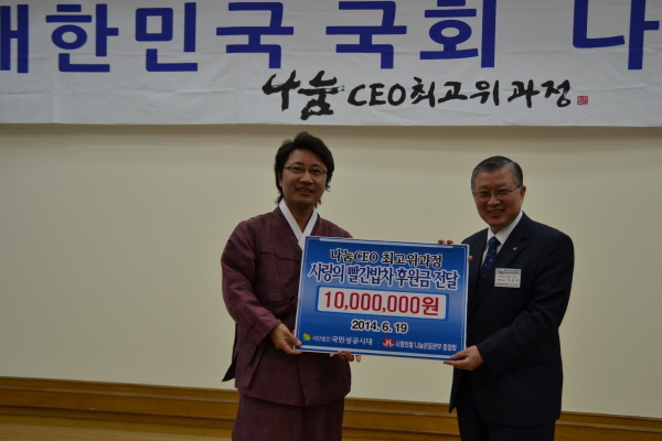 ±¹È¸³ª´®CEOÃÖ°íÀ§°úÁ¤ 1õ¸¸¿ø ±âºÎ±Ý Àü´Þ½Ä - ¡°±èÆ÷½Ã¸í¿¹È«º¸´ë»ç ÇÑÇѱ¹ ÀÛ°¡, Èñ¸Á´ëÇѹα¹À» À§ÇØ Áö½Ä³ª´®°¿¬ ÁÖ¸ñ¡± |