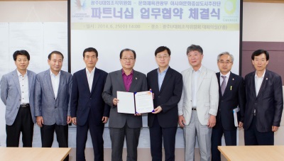 2015±¤ÁÖÇϰèÀ¯´Ï¹ö½Ã¾Æµå´ëȸ Á¶Á÷À§¿øÈ¸(»ç¹«ÃÑÀå ±èÀ±¼®)¿Í ¹®È­Ã¼À°°ü±¤ºÎ ¾Æ½Ã¾Æ¹®È­Á߽ɵµ½ÃÃßÁø´Ü(´ÜÀå ±è¼ºÀÏ)Àº 25ÀÏ Á¶Á÷À§¿øÈ¸ ȸÀǽǿ¡¼­ ¡®±¤ÁÖU´ëȸ ¼º°ø °³ÃÖ¡¯¿Í ¡®¾Æ½Ã¾Æ¹®È­Á߽ɵµ½Ã ±¤ÁÖ Á¶¼º¡¯À» À§ÇØ »óÈ£ ¾÷¹«Áö¿øÀ» ¾à¼ÓÇÏ´Â Çù¾àÀ» ü°áÇß´Ù.