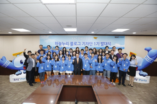 Çѱ¹°øÇ×°ø»ç´Â 9ÀÏ, °øÇ× Á¾»ç¾÷¹« ¹× ä¿ë¿¡ °ü½ÉÀÌ ¸¹Àº Àü±¹ °¢Áö 30¸íÀÇ ´ëÇлýµéÀÌ ¸ðÀÎ ÀÚ¸®¿¡¼­ ¡®ºí·Î±× ±âÀÚ´Ü 1±â¡¯ À§ÃËÀåÀ» ¼ö¿©ÇÏ°í ¹ß´ë½ÄÀ» °¡Á³´Ù.