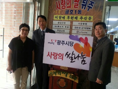 ±èÀ±¼¼ »õ´©¸®´ç ±¤ÁֽôçÀ§¿øÀåÀº ÃëÀÓ ½Ä ¶§ ȭȯ ´ë½Å ¹ÞÀº ½Ò·Î ¡®»ç¶ûÀÇ ½Ò ³ª´®¡¯ ¿îµ¿À» ÆîÃÆ´Ù. ±è À§¿øÀåÀº 15ÀÏ ±¤ÁÖ ¼­±¸ ±ÝÈ£1µ¿ Áֹμ¾Å͸¦ ¹æ¹®ÇØ Áö³­ 7ÀÏ ±¤Áֽôç À§¿øÀå ÀÌ¡¤ÃëÀÓ½Ä ¶§ ÃàÇÏȭȯ ´ë½Å ¹ÞÀº ½Ò 200§¸(20§¸ 10Æ÷)À» ¾î·Á¿î ÀÌ¿ô¿¡ ½á´Þ¶ó¸ç ±âŹÇß´Ù.