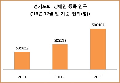 16ÀÏ °æ±âµµ¿¡ µû¸£¸é µµ°¡ º¸°Çº¹ÁöºÎ¿¡¼­ °øÇ¥ÇÑ '13³â 12¿ù¸» ±âÁØ µî·Ï Àå¾ÖÀÎ ÇöȲÀ» ºÐ¼®ÇÑ °á°ú µµÀÇ Àå¾ÖÀÎ µî·Ï Àα¸´Â 2011³â 505,052 ¸í¿¡¼­ 2012³â 505,519¸í, 2013³â 506,464¸íÀ¸·Î ÇØ¸¶´Ù ¼ÒÆø Áõ°¡ÇÑ °ÍÀ¸·Î Á¶»çµÆ´Ù.