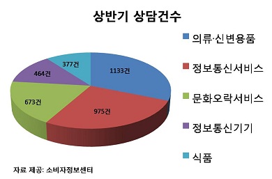 »ó´ãÀÌ °¡Àå ¸¹Àº ǰ¸ñÀ¸·Î´Â ¡°ÀÇ·ù¡¤½Åº¯¿ëǰ¡±ÀÌ 1,133°ÇÀ¸·Î 14.8%¸¦ Â÷ÁöÇßÀ¸¸ç, ¡°Á¤º¸Åë½Å¼ºñ½º¡± 975°Ç(12.8%), ¡°¹®È¿À¶ô¼ºñ½º 673°Ç(8.8%), ¡±Á¤º¸Åë½Å±â±â¡° 464°Ç(6.1%), ½Äǰ 377°Ç(4.9%) µîÀÇ ¼øÀ̾ú´Ù.