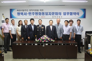 ÆòÅðæÂû¼(¼Àå °ûÁ¤±â)¿¡¼´Â ¹ÎÁÖÆòÈÅëÀÏÀÚ¹®È¸ÀÇ ÆòÅýà ÇùÀÇȸ(ȸÀå ÇÑÀÎÈñ)¿Í ºÏÇÑÀÌÅ»ÁֹΠÁ¤ÂøÁö¿øÀ» À§ÇÑ ¾÷¹«Çù¾à½ÄÀ» 2014³â 7¿ù 23ÀÏ °³ÃÖÇÏ¿´´Ù.