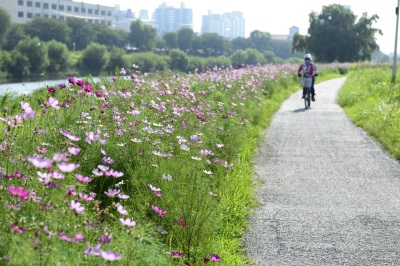 ±¤ÁÖõ »êÃ¥·Î¿¡ ¸¸°³ÇÑ ÄÚ½º¸ð½º°¡ ¹°°áÀ» ÀÌ·ç¸ç ½Ã¹Îµé¿¡°Ô µµ½É ÈÞ½Äó¸¦ Á¦°øÇϰí ÀÖ´Ù.