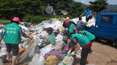 À̹ø Çà»ç¿¡´Â »õ¸¶À»³²³àÁöµµÀÚ, ¸¶À»ÀÌÀå, °¢±Þ »çȸ´Üü, Áö¿ªÁֹΠµî 60¿©¸íÀÌ Âü¿©ÇØ °¢ ¸¶À»´ÜÀ§º°·Î ³ó¾÷¿ë Æóºñ´Ò ¾à20Åæ, °íö ¾à1Åæ, ÆóÁö 1Åæ µîÀ» ÀÏÁ¦È÷ ¼ö°ÅÇÏ°í º¸°³¸é»ç¹«¼Ò ±¤Àå¿¡¼­ ÇÔ²² ºÐ¸®ÀÛ¾÷À» ½Ç½ÃÇß´Ù.
