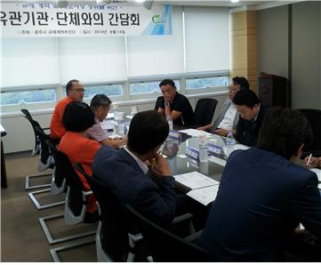 ±¤Áֽà ±ÔÁ¦°³ÇõÃßÁø´Ü ÁÖ°üÀ¸·Î °³ÃÖµÈ °£´ãȸ¿¡´Â Çϱ¤»ó°øÈ¸ÀǼÒ, Çѱ¹¼Ò±â¾÷¼Ò»ó°øÀο¬ÇÕȸ, ±¤Áֽñâ¾÷ÀÎÇùȸ, °ÇÃà»çÇùȸ, Ãø·®Çùȸ, ¹ý¹«»çȸ, °øÀÎÁß°³»çÇùȸ ÀÓ¿ø µîÀÌ Âü¼®ÇØ ¹Î°£´ÜüÀÇ ±ÔÁ¦°³¼± °ÇÀǰúÁ¦¸¦ ÁßÁ¡ÀûÀ¸·Î ¹ß±¼ÇÏ°í ³íÀÇÇß´Ù.