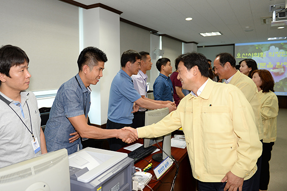 ¿À»ê½ÃÀÇȸ(ÀÇÀå ¹®¿µ±Ù)´Â 19ÀÏ 2014 À»Áö¿¬½ÀÈÆ·Ã¿¡ ÀÓÇϰí ÀÖ´Â °¢ ±â°üÀ» ÀÏÀÏÀÌ ¹æ¹® °Ý·ÁÇÏ¿´´Ù.