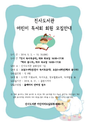 µ¶¼È¸¿¡ Âü°¡ÇÏ°í ½ÍÀº ¾î¸°ÀÌ´Â ¿À´Â 30ÀϱîÁö ȨÆäÀÌÁö(www.apl.go.kr)·Î ½Åû°¡´ÉÇϸç, ¸ðµç Âü°¡ºñ´Â ¹«·áÀÌ´Ù. ÀÚ¼¼ÇÑ »çÇ×Àº ȨÆäÀÌÁö ¹× ÀüÈ ¢Î 678-4096¢¦7·Î ¹®ÀÇÇÏ¸é µÈ´Ù.