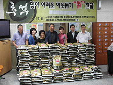 ÀÌ¿ôµ½±â ¹°Ç°À» ±âŹ ¹ÞÀº ¼­Á¤µ¿ÀåÀº ¡°¸Å³â ¸íÀý ¶§¸¶´Ù »ç¶ûÀÇ ¹°Ç°À» ÈÄ¿øÇÏ°í ºÀ»çȰµ¿À¸·Î ¼­Á¤µ¿¿¡ µµ¿òÀ» ÁÖ´Â °¢ ´Üüȸ¿øµé°ú ÈÄ¿øÀڵ鲲 °¨»ç¿Í Áö¼ÓÀûÀÎ ÈÄ¿øÀ» ´çºÎµå¸®¸ç, ¾î·Á¿î ÀÌ¿ôµéÀÌ ÈÆÈÆÇÑ Ãß¼®À» ¸ÂÀÌÇÒ ¼ö ÀÖµµ·Ï ÈÄ¿øÀÚµéÀÇ ¶æÀ» ´ã¾Æ Àü´ÞÇϰڴÙ"°í ¸»Çß´Ù.