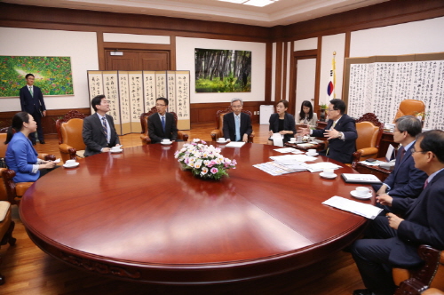 Á¤ÀÇÈ ±¹È¸ÀÇÀåÀº 9.4(¸ñ) ¿ÀÈÄ 4½Ã 30ºÐ ÀÇÀåÁý¹«½Ç¿¡¼ ÇÑ‧Áß‧ÀÏ Çù·Â»ç¹«±¹ »ç¹«ÃÑÀå´ÜÀ» Á¢°ßÇϰí 3±¹°£ Çù·Â °ü°è ÁõÁø ¹æ¾È¿¡ ´ëÇØ Æø³ÐÀº ÀǰßÀ» ³ª´³´Ù.