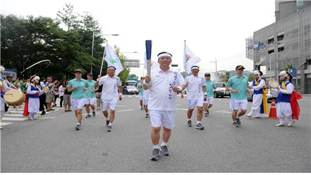 ¡®2014 ÀÎõ¾Æ½Ã¾Æ°æ±â´ëȸ¡¯¸¦ ¹àÇôÁÙ ¼ºÈ°¡ 15ÀÏ Çϳ²½Ã¿¡ µµÂøÇß´Ù. ½Ã¹Î µî 500¿©¸íÀÌ Âü¼®ÇÑ À̳¯ Çà»ç¿¡¼ À̱³¹ü ½ÃÀåÀº Çϳ²±¸°£ ù ÁÖÀÚ·Î ³ª¼ ½Ãû Á¤¹®ºÎÅÍ 145m ±¸°£À» ´Þ¸®¸ç °æ±â ºÐÀ§±â¸¦ °íÁ¶½ÃÄ×´Ù.