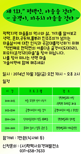 [¸ðÁý] Á¦1ȸ, ¡°ÆòÅÃìÑ, ¸¶À»À» °È´Ù¡± - ±Û°»ÀÌ․ÇÇ¿ìÄ¡ ¸¶À»À» °È´Ù |