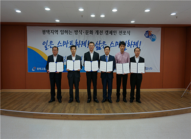 ÀÌ ³¯ Çà»ç¿¡´Â ÆòÅÃÁö¿ª ³ë»ç´Üü, ÁÖ¿ä ±â¾÷ü, °ø°ø±â°ü, ÀÚÄ¡´Üü ´ëÇ¥ ¹× °ü°èÀÚ µî °¢ °è Àλç 50¿©¸íÀÌ Âü¼®ÇÏ¿©, ´Ù¾çÇÑ ±Ù¹«¹æ½Ä µµÀÔ°ú »õ·Î¿î ±â¾÷¹®È Çü¼º. È¿À²ÀûÀÎ ±Ù¹«¹æ½ÄÀ» Ȱ¿ë ¿©°¡․ÀÚ±â°è¹ß µîÀ» ÅëÇÑ Á¶Á÷ Ȱ¼ºÈ ¹× ±â¾÷ÀÇ »ý»ê¼º Áõ´ë, Áö¿ª»çȸ¿Í »ê¾÷ÇöÀå¿¡¼ ÀÏÇÏ´Â ¹æ½Ä º¯È¸¦ À§ÇÑ ´Ù¾çÇÑ ¹æ¾È °±¸, À¯¿¬ÇÑ ±Ù¹«¹æ½Ä È®»êÀ» À§ÇÑ È¿°úÀûÀÎ Á¤Ã¥ °³¹ß µîÀ» ³»¿ëÀ¸·Î ÇÏ´Â ¡°Àϰú »îÀÇ ÇູÇÑ ±ÕÇüÀ» À§ÇÑ ¿ì¸®ÀÇ ´ÙÁü¡±À» ¼±¾ðÇϰí, °¢ÀÚÀÇ ¿ªÇÒÀ» ´ÙÇϱâ·Î Çß´Ù.
