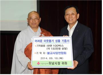 Çϳ²½Ã ºÒ±³»ç¾Ï¿¬ÇÕȸ´Â Áö³ 18ÀÏ Çϳ²½Ãû ´ëȸÀǽǿ¡¼ ¿¸° ȸÀå ÀÌÃëÀӽĿ¡¼ ¶ó¸é 100¹Ú½º(¾à 180¸¸¿ø »ó´ç)¸¦ Çϳ²½Ã¿¡ ±âŹÇß´Ù.