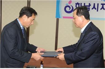 À̱³¹ü Çϳ²½ÃÀåÀº Áö³ 23ÀÏ ½Ãû»óȲ½Ç¿¡¼ Áö¿ªÀÚÀ²¹æÀç´Ü ´ÜÀå µî ÀÓ¿ø 20¸í¿¡°Ô À§ÃËÀåÀ» ¼ö¿©Çß´Ù.
