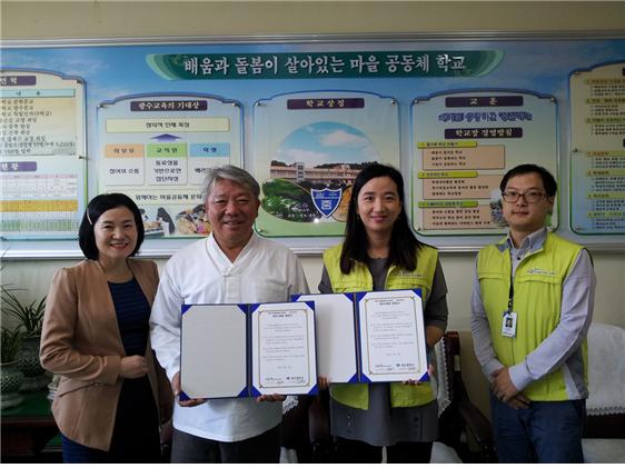 ±¤¼öÁßÇб³ ÀåÀç±Ù ±³ÀåÀº ¡°À̹ø ±âȸ¸¦ ÅëÇØ Çб³ Â÷¿ø¿¡¼ Áö¿ª»çȸ Ãë¾à°èÃþÀ» À§ÇÑ º¹Áö»ç¾÷¿¡ ±â¿©ÇÒ ¼ö ÀÖµµ·Ï Àû±ØÀûÀÎ ÇùÁ¶¸¦ ÇϰڴÙ.¡± °í ¸»Çß´Ù.