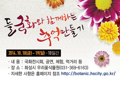 ±¹ÈÇâ±â °¡µæÇÑ ½Ä¹°¿øÀ¸·Î ³î·¯¿À¼¼¿ä! - ȼº½Ã ¿ì¸®²É½Ä¹°¿ø, 10¿ù 10ÀÏ~19ÀÏ¡®µé±¹È¿Í ÇÔ²²ÇÏ´Â Ã߾︸µé±â¡¯Çà»ç |