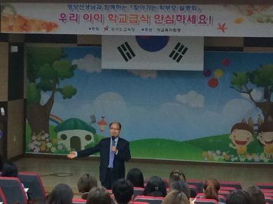 À̹ø ¼³¸íȸ´Â °æ±âµµ±³À°Ã» ¹Ú¹ÌÁø »ç¹«°üÀÇ Ç°Áú°ú ¾ÈÀüÀ» Áß½ÉÀ¸·Î ÇÏ´Â ½ÄÀç·á °øµ¿±¸¸Å¿¡ ´ëÇÑ ¼Ò°³¿Í ÆòÀÏÃÊ(ÆòÅðü³» ¼ÒÀç) À±ÇýÁ¤ ¿µ¾ç±³»çÀÇ ¡®¿ì¸® ¾ÆÀÌ Çб³±Þ½Ä ¾È½ÉÇϼ¼¿ä¡¯¶ó´Â °ÀÇ·Î ÇкθðµéÀÌ Çб³±Þ½Ä¿¡ ´ëÇÑ ±Ã±ÝÁõÀ» Ç®¾îÁÖ´Â ½Ã°£À» °¡Á³´Ù.