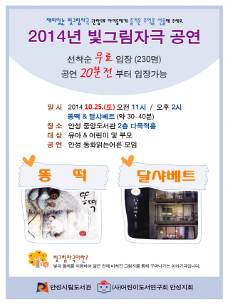 ¾È¼º½Ã Áß¾Óµµ¼­°üÀº 10¿ù ¹®È­ÀÇ ´ÞÀ» ¸Â¾Æ 25ÀÏ(Åä) ¿ÀÀü11½Ã, ¿ÀÈÄ2½Ã ÃÑ 2ȸ¿¡ °ÉÃÄ À¯¾Æ¡¤¾î¸°À̸¦ À§ÇÑ ¡®ºû±×¸²Àڱء¯ °ø¿¬À» °³ÃÖÇÑ´Ù°í ÀüÇß´Ù.