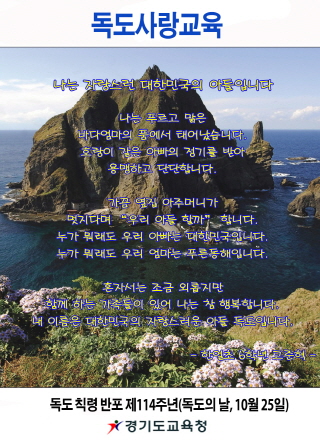 (±³À°°¨ ÀÌÀçÁ¤)Àº µ¶µµ°¡ ¿ì¸®³ª¶ó ¶¥ÀÓÀ» ´ë¿ÜÀûÀ¸·Î ¼±¾ðÇÑ ´ëÇÑÁ¦±¹ Ä¢·É Á¦41È£ ¹ÝÆ÷ 114ÁÖ³âÀÎ 10¿ù 25ÀÏÀ» ¾ÕµÎ°í, µ¶µµÁÖ±Ç ÀÇ½Ä °­È­¸¦ À§ÇÑ °è±â±³À°À» °¢±Þ Çб³¿¡¼­ ½Ç½ÃÇÑ´Ù.