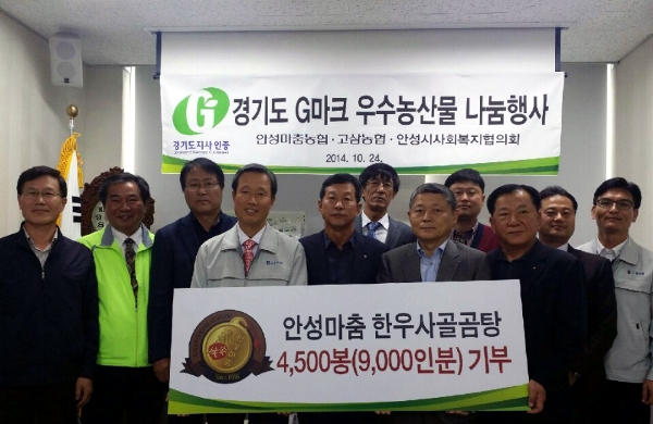 À̳¯, Àü´Þ ¹ÞÀº ¾È¼º½Ã»çȸº¹ÁöÇùÀÇȸ(ȸÀå ÀÌÁ¤Âù)Àº ¡°±âºÎ¸¦ ÇØÁØ °í»ï³óÇù°ú ¾È¼º¸¶ÃãǪµå¼¾ÅÍ, ¾È¼º¸¶Ãã³óÇù¿¡ °¨»çÇÑ ¸¶À½À» ÀüÇÑ´Ù.¡±¸ç, ¡°¾È¼º¸¶Ãã ÇÑ¿ì°õÅÁÀº 2013³â °æ±âµµÁö»çÀÎÁõ(G¸¶Å©)¿ì¼ö³ó»ê¹°·Î ¼±Á¤µÈ ¿ì¼öÇÑ ½ÄǰÀ¸·Î Áö¿ª¼Ò¿Ü°èÃþ(¹«·á±Þ½Ä¼Ò, 119»ç¶ûÀÇ ¹äÂ÷, Àç°¡°¡Á¤, Áö¿ª¾Æµ¿¼¾ÅÍ µî)¿¡ ¼ÒÁßÈ÷ Àü´ÞÇϰڴÙ.¡±°í ÀüÇÏ¿´´Ù.