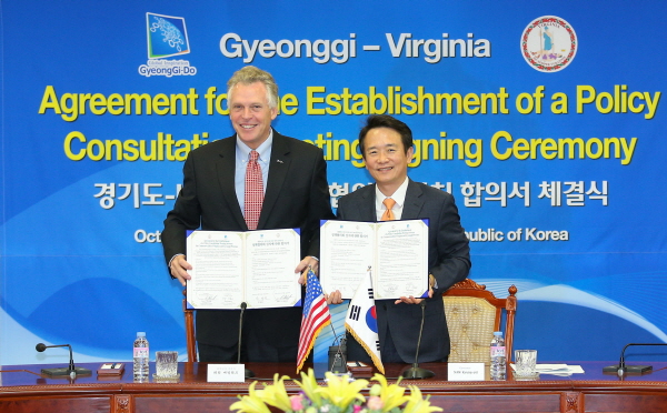 ³²°æÇÊ °æ±âµµÁö»ç¿Í Å׸® ¸ÅÄø®ÇÁ(Terry McAuliffe) ¹öÁö´Ï¾Æ ÁÖÁö»ç´Â 28ÀÏ ¿ÀÀü 11½Ã °æ±âµµÃ» »óȲ½Ç¿¡¼ À̰°Àº ³»¿ëÀ» ´ãÀº ¾ç Áö¿ª°£ ¡®Á¤Ã¥ÇùÀÇȸ ¼³Ä¡¿¡ °üÇÑ ÇÕÀǼ¡¯¿¡ ¼¸íÇß´Ù.