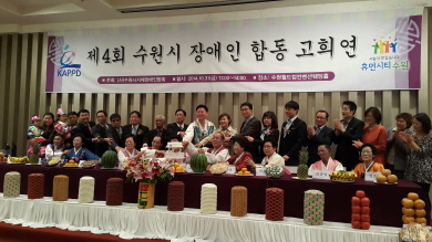 (»ç)Çѱ¹ÁöüÀå¾ÖÀÎÇùȸ ¼ö¿ø½ÃÁöȸ(ȸÀå ÃÖÁ¾Çö)¿¡¼ ÁÖ°üÇÑ À̳¯ °íÈñ¿¬Àº 7¸íÀÇ Àå¾ÖÀÎ ³ëÀΰú ¹è¿ìÀÚ¸¦ ¸ð½Ã°í °Ç°À» ±â¿øÇÏ´Â ÇåÁÖ¿Í ½Ä»ç´ëÁ¢, ³ë·¡ÀÜÄ¡·Î ÁøÇàµÆÀ¸¸ç °¡Á·°ú ÀÚ¿øºÀ»çÀÚ µî 400¿© ¸íÀÌ Âü¼®Çß´Ù.