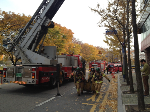 ¿ÀÈÄ¿¡ ½Ç½ÃÇÏ´Â ¾È»ê¼Ò¹æ¼ °¨»ç¿¡¼´Â ¾È»ê½Ã °íÀܵ¿ ¼ÒÀç Áß¾ÓÇÏÀÌÃ÷ºôµù¿¡ °¡»óÀ¸·Î ÈÀç°¡ ¹ß»ýÇÑ °ÍÀ¸·Î ¸Þ½ÃÁö¸¦ ºÎ¿©ÇÏ¿© °í°¡»ç´Ù¸®Â÷¿Í ±¼ÀýÂ÷ µî ¼Ò¹æÂ÷°¡ ÇöÀå¿¡ Ã⵿ÇÏ¿© ½ÇÀü°ú °°Àº ÈÀçÁø¾Ð°ú ÀÎ¸í±¸Á¶ÈÆ·ÃÀ» ½Ã¿¬ÇÏ¿´´Ù.