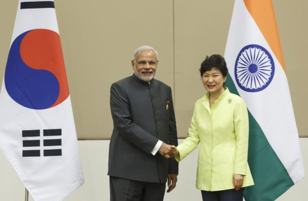 ¹Ú ´ëÅë·ÉÀº ±â¾÷ȯ°æ°³¼±, ¿Ü±¹ÀÎÅõÀÚÀ¯Ä¡ µî ¸ðµð ÃѸ®°¡ ÃßÁøÇÏ´Â ¡°Make in India¡± Á¤Ã¥°ú °ü·Ã, Çѱ¹±â¾÷ÀÇ ÀεµÅõÀÚ È®´ë¸¦ À§ÇÑ ¶óÀÚ½ºÅºÁÖ Çѱ¹±â¾÷ Àü¿ë°ø´ÜÀÌ Á¶¼Ó ¿Ï°øµÇ¾î ¸¹Àº Çѱ¹ ±â¾÷µéÀÌ Âü¿©ÇÒ ¼ö Àֱ⸦ Èñ¸ÁÇÑ´Ù°í ¾ð±ÞÇß´Ù. ¶ÇÇÑ, °í¼Óöµµ °Ç¼³, °µÁö½º°­ Á¤È­»ç¾÷, ½º¸¶Æ®½ÃƼ °Ç¼³ µî ÀεµÀÇ ´ë±Ô¸ð °Ç¼³ ÀÎÇÁ¶ó»ç¾÷¿¡ ½Ã°ø°ú ±â¼ú·ÂÀ» ¼¼°èÀûÀ¸·Î ÀÎÁ¤¹Þ°í ÀÖ´Â Çѱ¹±â¾÷µéÀÌ Âü¿©ÇÒ ¼ö ÀÖµµ·Ï °ü½ÉÀ» °¡Á®ÁÙ °ÍÀ» Èñ¸ÁÇÑ´Ù°í Çß´Ù. ÀÌ¿¡ ´ëÇØ ¸ðµð ÃѸ®´Â °ø°¨À» Ç¥Çϸ鼭, "Make in India" °¢±Þ °Ç¼³¿¡ Çѱ¹±â¾÷ÀÇ ÅõÀÚ¸¦ Àû±Ø ȯ¿µÇÑ´Ù´Â ÀÔÀåÀ» ÇÇ·ÂÇß´Ù.