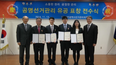 ±¤ÁÖ±¤¿ª½Ã¼±°Å°ü¸®À§¿øÈ¸(ÀÌÇÏ ±¤ÁÖ¼±°üÀ§)´Â 11. 13.(¸ñ) ±¤ÁÖ¼±°üÀ§ ´ëȸÀǽǿ¡¼ Áö³ 6. 4. ½Ç½ÃÇÑ Á¦6ȸ Àü±¹µ¿½ÃÁö¹æ¼±°ÅÀÇ °øÁ¤ÇÑ ¼±°Å°ü¸®¿¡ ±â¿©ÇÑ À¯°øÀÚ¿¡°Ô ¼ö¿©µÇ´Â ±¹¹«ÃѸ® ¹× Áß¾Ó¼±°Å°ü¸®À§¿øÈ¸À§¿øÀå ǥâÀå Àü¼ö½ÄÀ» °¡Á³´Ù.