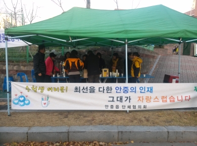À̳¯ ¾ÈÁßÀ¾ ´ÜüÇùÀÇȸ¿¡¼­´Â ÃÖÃÊÀÇ ¼ö´É ½ÃÇè ¼­ºÎÁö¿ª À¯Ä¡¸¦ ±â³äÇÏ°í ¼öÇè»ýµéÀ» °Ý·ÁÇϰíÀÚ À̸¥ »õº®ºÎÅÍ ¾ÈÀÏÁß, ÇöÈ­Áß ±³¹® ¾Õ¿¡¼­ Â÷ ³ª´® ºÀ»ç¸¦ ÆîÃÆ´Ù.