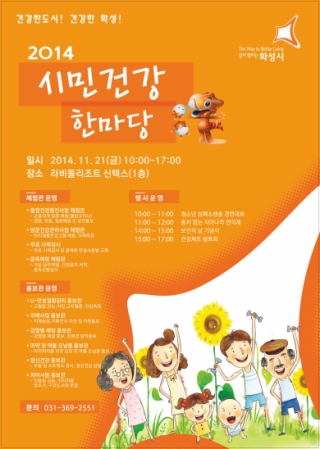 È­¼º½Ã°¡ º¸°Ç¿¡ ´ëÇÑ ½Ã¹ÎÀÇ ÀÌÇØ¿Í °ü½ÉÀ» ³ôÀ̱â À§ÇØ ¡®2014 ½Ã¹Î°Ç°­ ÇѸ¶´ç¡¯À» ¿À´Â 21ÀÏ ¶óºñµ¹¸®Á¶Æ® ½ÅÅØ½º(1Ãþ)¿¡¼­ °³ÃÖÇÑ´Ù.