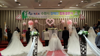 2014³â ¼ö¿ø½Ã Àå¾ÖÀÎ ÇÕµ¿°áÈ¥½ÄÀÌ 21ÀÏ ¿ÀÀü 11½Ã ¼ö¿ø ¿ùµåÄÅÄÁº¥¼Ç¿þµùȦ(ÆÈ´Þ±¸ ¿ì¸¸µ¿)¿¡¼ ¿·È´Ù.