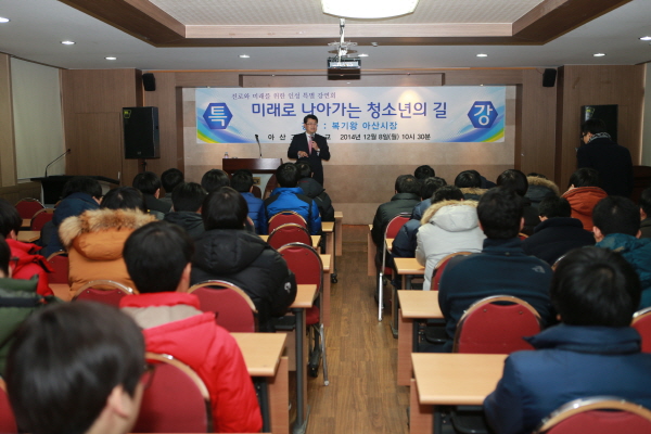 º¹±â¿Õ ¾Æ»ê½ÃÀåÀÌ »çȸ¿¡ ù¹ßÀ» ³»µðµô ÇлýµéÀÇ ¾ËÂù ´ëÇлýȰ Áغñ¿Í ¹Ì·¡ ¼³°è¿¡ ´ëÇÑ »õ·Î¿î µ¿±âºÎ¿©¸¦ À§ÇØ Áö³­ 8ÀÏ ¾Æ»ê°íµîÇб³¿¡¼­ °íµîÇб³ 3Çгâ Çлý 100¿© ¸íÀ» ´ë»óÀ¸·Î Ư°­À» ½Ç½ÃÇß´Ù.